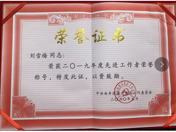 再傳捷報(bào)曲阜樂康醫(yī)療科技集團(tuán)股份公司董事長(zhǎng)劉雪梅集團(tuán)下屬公司山東裕鑫重工有限公司康慶龍被授予二零一九年度先進(jìn)工作者榮譽(yù)稱號(hào)!